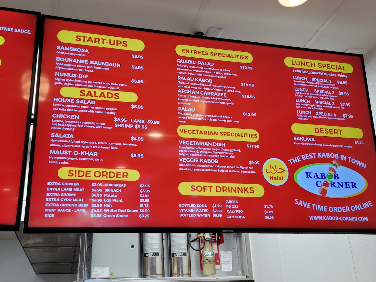 When you step into Kabob Corner Of Fredericksburg, you're in for a treat that will transport your taste buds straight to the heart of flavorful, tender kabobs. Located at 1631 Carl D Silver Pkwy, Fredericksburg, VA, this cozy spot is where savory meets satisfying, offering a menu that features a variety of grilled kabobs, fresh salads, and hearty sides. Whether you’re craving something classic like a juicy chicken kabob or ready to try something more adventurous, every bite is crafted with care and bursting with spices that are as bold as they are delicious. From the first taste to the last, Kabob Corner Of Fredericksburg Menu delivers comfort and flavor, perfect for any occasion. Pair your meal with one of their homemade dips or sides, and you’ve got yourself a meal that’s hard to beat.